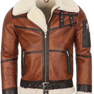 Hollert Heren lamsvacht jas B16 Model 3 Walnuss/Cappuccino Sylvester Style winterjas 100% Merino bontjas leren jas