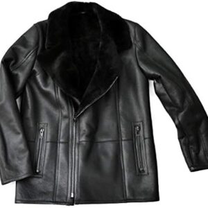 Hollert Merino-schapenvacht voor heren, echt merino schapenvacht, nappaleder, bikerjack, winterjas, bontjas, zwart