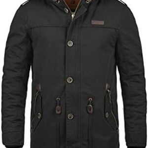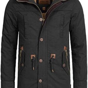 Indicode Pennington Winterjas voor heren, 100% katoen met teddyvoering en afneembare capuchon, warme winterparka, robuuste herenjas, outdoorjas