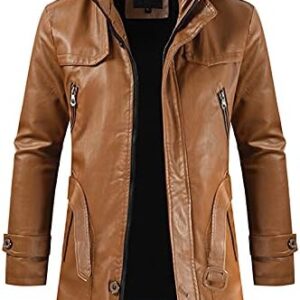 IQYU Leren jas voor heren, winterparka met imitatiebont, mantel, echt leer, koningsmantel met imitatiebont en bontkraag, fleecejack, windbreaker, warme winterjas, lang, slim fit, trenchcoat