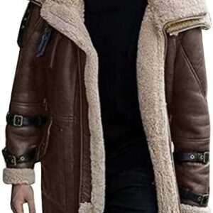 L9WEI Overgangsjas voor heren, suède jas voor heren, winterjas met bontkraag, leren jas, bomberjack, verdikte overgangsjas