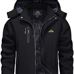 KEFITEVD Waterdichte winterjas voor heren, fleece gevoerd, ski-jack, softshelljas, outdoor, winddicht, werkjas met afneembare capuchon, vele zakken