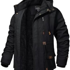 KEFITEVD Winterjassen voor mannen Fleece Windbeaker Winddicht Hooded Bomber Cargo Jacket Militaire Jassen met Multi Zakken