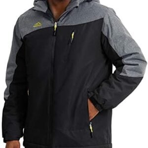 KEFITEVD Snowboardjas voor heren, warm gevoerd, ski-jas, waterdicht, softshelljas met capuchon, fleece, winterjas, ademend, functionele jas, zwart-grijs-nieuw, XL