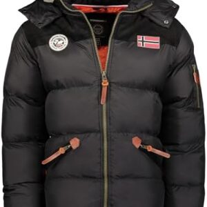 Geographical Norway Valon & Vance winterjas voor heren, gewatteerde jas, warmte-isolerend, ademend, afneembare capuchon