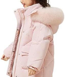 L SERVER Donsjack voor kinderen, meisjes, langere dikkere winterjas, warme gewatteerde jas, winddichte parka, stijlvolle winterjas met bontkraag en capuchon