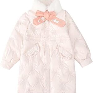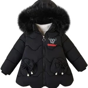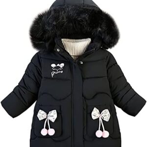 LCIGIA Winterjas voor meisjes, kinderen, winterjas met strik, verdikte jas met bontcapuchon, winddichte gewatteerde jas met lange mouwen, kinderjas met borduurwerk
