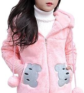 LCIGIA Winterjas voor meisjes, kinderen, winterjas met capuchon, fleecejas, warm imitatiebont mantel, schattige fleece mantel