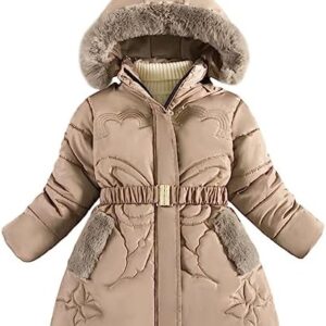 LCIGIA Winterjas voor meisjes en kinderen, gevoerde jas met afneembare capuchon, gewatteerde jas met afneembare riem, outdoor kinderjas