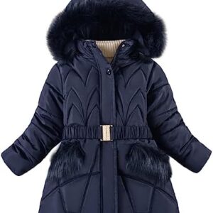 LCIGIA Winterjas voor meisjes, kinderen, winterjas met afneembare capuchon, gevoerde jas, gewatteerde jas met afneembare riem, outdoorjas