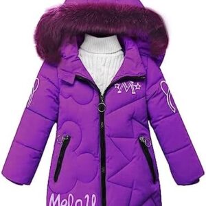 linboo Donsjack voor meisjes, prinses, winterjas, fleecejas, kinderen, warm, met capuchon, dik bont, parka met bezaaide parels