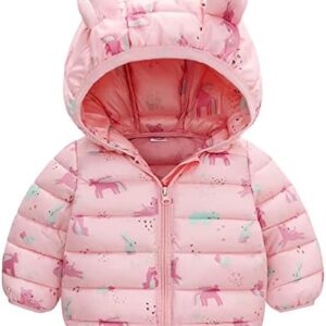 JinBei Puffer Jas voor Kinderen, Baby Jongens en Meisjes Winterjassen met Capuchon Dinosaurus Eenhoorn Winter Jacks Jassen Bovenkleding Lichtgewicht Warmer Herfst Mantels Leeftijd 1-2 jaar