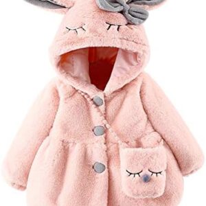Jas met capuchon voor meisjes, winterjas met capuchon, fleece, dik, met haas, schattig, kleine zak, warm, zacht voor kinderen, baby, herfst