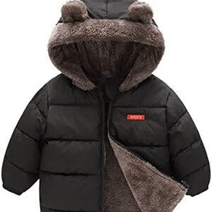kids4ever Baby Jacket Boys Girls Cute Plush Bear Ears Winter Jacket Zip Hooded Jacket with Pockets 6 Months 5 Years