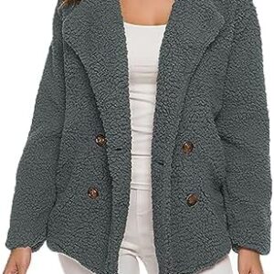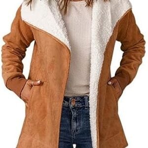L9WEI Warme winterjas dames herfst winter pluche jas vrouwen reverskraag fleece jas warme lange mouwen winterjas parka met zak