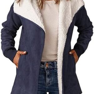 L9WEI Softshelljas voor dames, herfst en winter, warme mantel, verdikt, pluche jas, vrouwen, effen, winterjas met capuchon, casual, losse wollen jas