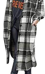 L9WEI Vintage geruite mantel voor dames, elegant, warme winterjas voor vrouwen, oversized, klassieke outwear, revers, korte winterjas, herfst, winter, overgangsjas, jas met knoop