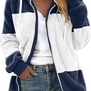 L9WEI Winterjas dames, oversized pluche jas met capuchon patchwork warme fleece mantel vrouwen casual winterjas kleurblok behaaglijk capuchonjack
