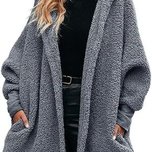L9WEI Winterjas voor dames, oversized, pluche jas met zakken, lange teddy winterjas, warme casual pluche jas voor vrouwen, fleece winterjas