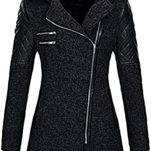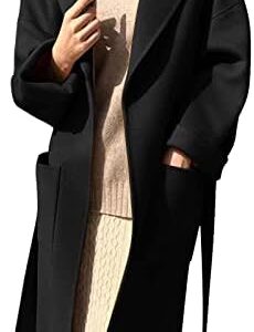 Luckywaqng Womens Fit Mid Long Double Breasted Coat Lapel Jacket Overcoat Outwear Trench Windbreaker 100 Wol Winterjassen Vrouwen, zwart, S