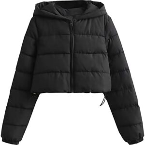 LOIJMK Dames pufferjas winter korte lange mouwen dames cropped fit bufferjas met brede casual moderne winterjas gewatteerde jas winter puffer jas warm met capuchon outdoorjas