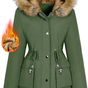 Nadeer Women’s Jacket Winter Long Warm Lined Winter Parka Functional Jacket Quilted Winter Jacket Long Sleeve Hoodie Hoodie