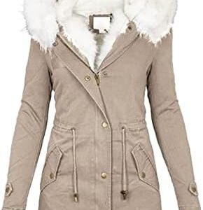 Vrouwen Winterjas Parka Hoodie Jas Outdoor Lange Mouw Bontrand Winddicht Warm Streetwear Lange Jas,Khaki,M