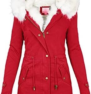 Vrouwen Winterjas Parka Hoodie Jas Outdoor Lange Mouw Bontrand Winddicht Warm Streetwear Lange Jas,Rood,L
