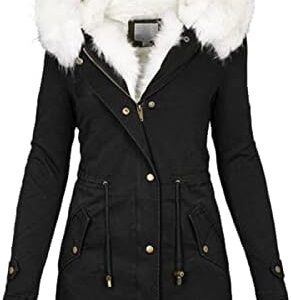 Vrouwen Winterjas Parka Hoodie Jas Outdoor Lange Mouw Bontrand Winddicht Warm Streetwear Lange Jas,zwart,XL