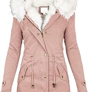Vrouwen Winterjas Parka Hoodie Jas Outdoor Lange Mouw Bontrand Winddicht Warm Streetwear Lange Jas,Roze,XL