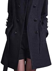 Women’s Long Coat with Belt with Pockets Windproof Elegant Knee-Length Trench Coat Winter Jacket Transition Jacket Fashion Wind Jacket