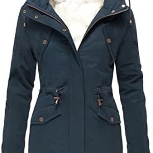 Winterjassen voor vrouwen, vrouwen winterjassen met capuchon, Vrouwen Solid Casual Dikkere Winter Slanke Katoenen Lammy Jacket Overjas, Winter Warm (Color : Navy, Size : S)