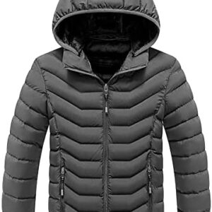 LSERVER Gewatteerde jas voor jongens, met capuchon, stijlvolle getailleerde winterjas, winddichte thermische jas, dikke winterjas voor kinderen