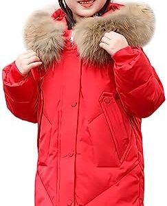 LSERVER Kinderwinterjas voor meisjes met bontkraag capuchon fleece warm donsjack modieuze tuniek gewatteerde kinderen dikke lange winterjas