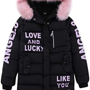 SXSHUN Winterjas voor meisjes, met afneembare bontcapuchon, kinderwinterjas, koudebescherming, warm, verdikt donsjack, donsjas, parka..
