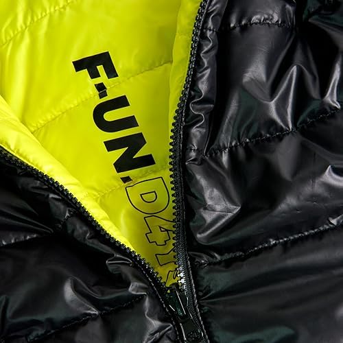 Omkeerbaar: deze parka heeft een uniek en omkeerbaar ontwerp, zodat uw kind kan kiezen uit twee opvallende kleuren: zwart en geel. Twee opties in één kledingstuk.