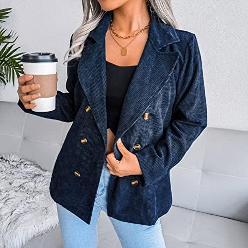 Dames Jassen Lichtgewicht Vrouwen Dubbele Breasted Corduroy Jas Lange Mouw Werk Kantoor Casual Vriendje Gezwollen Winterjassen voor Vrouwen Lang