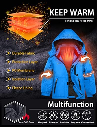 Waterdichte ski-jas: Professionele waterafstotende coating, ritssluitingen en zakken zijn ook waterdicht, je hoeft je geen zorgen te maken dat je tijdens het skiën, snowboarden of op regenachtige dagen nat wordt, onze waterdichte regenjas beschermt je volledig en effectief, houdt je lichaam de hele dag droog en warm, kan ook slecht regenachtig of mistig weer bestrijden.