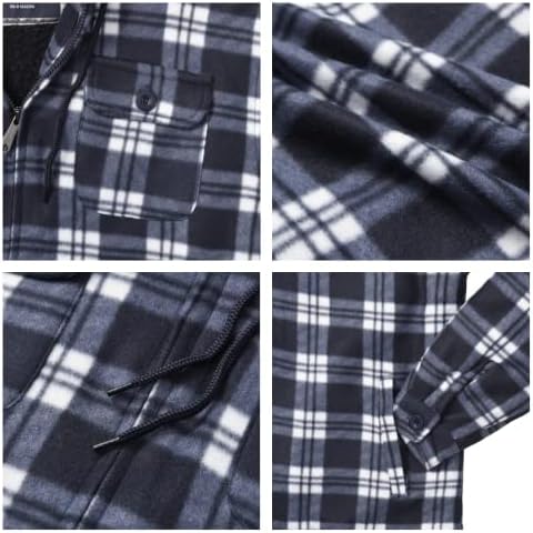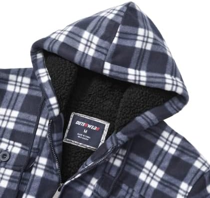 igeekwell Flanellen overhemd voor heren, thermohemd, winterjas, fleecevoering, beschermend hemd, flanel, werkhemd, flanellen overhemd, jas met capuchon