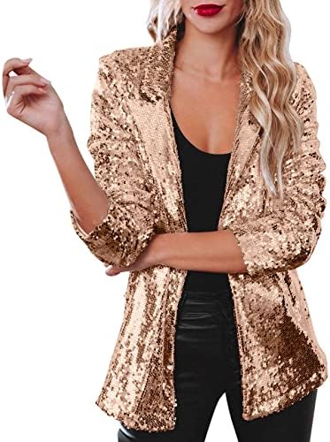 KENMERKEN: Jas voor dames met all-over pailletten, jas met lange mouwen, vest met open voorkant, solide en casual lange jasontwerp. Glanzend en sprankelend jasje met pailletten, laat je ’s nachts stralen en je onderscheiden van de massa.