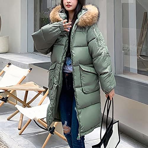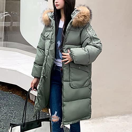 Jassen voor Vrouwen UK Winterjassen Vrouwen Winter Grote Pluche Hooded Halflange Dikker Katoenen Donsjack Slim-Fit Effen Kleur Uitloper Met Grote Zakken Lichtgewicht Jassen voor Vrouwen Mode