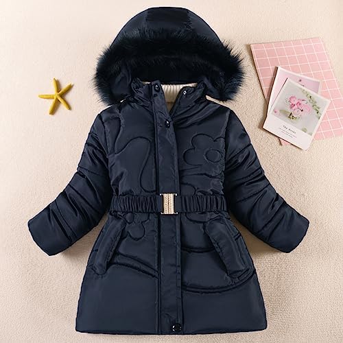Doordacht design: de gewatteerde jas voor meisjes is niet gemakkelijk te lopen fleece, het riemontwerp is in overeenstemming met kinderesthetiek, met een afneembare bontkraag capuchon, het ziet er zowel warm als goed uit als in de winter loopt.