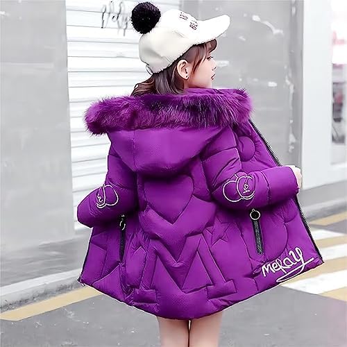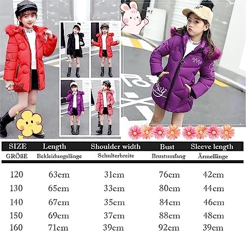 linboo Meisjesjas met capuchon met warme vulling, halflange donsjack, bedrukt met letters en patronen, winterjas, dikke jas, winddicht