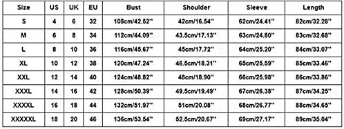 Maat XXXXL US: 16, UK: 18, EU: 44, bovenwijdte: 132 cm, schouders: 51 cm, mouwlengte: 68 cm, lengte: 88 cm.