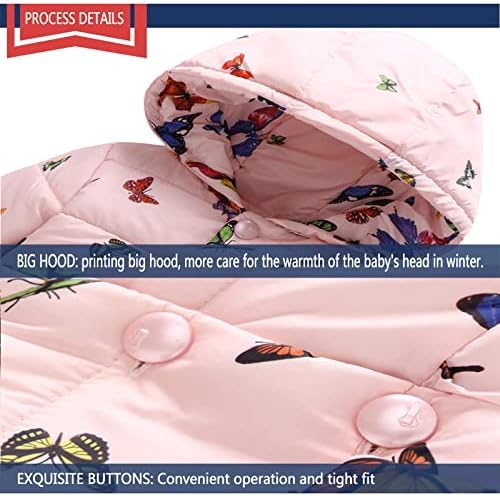 KNOOPONTWERP: Er zijn knopen aan de voorkant van de warme jas van het meisje, die gemakkelijk aan en uit te trekken is. De baby winterjas heeft een capuchon, die winddicht en warm is.