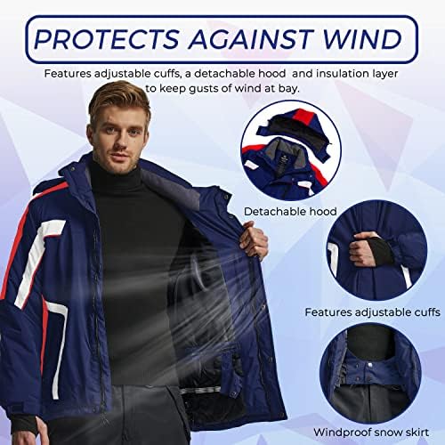 Wantdo Ski-jack voor heren, waterdicht, outdoor, winterjas, warm, met afneembare capuchon, winddicht, wandeljas voor op reis