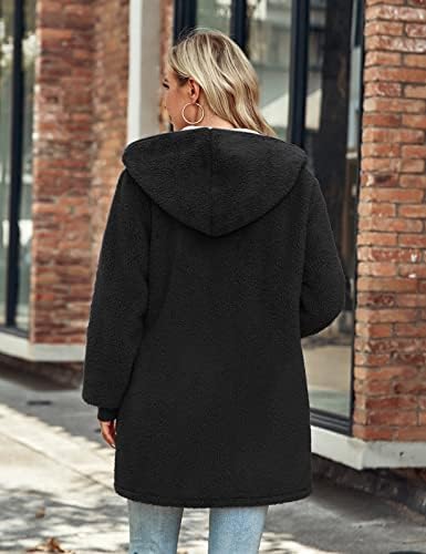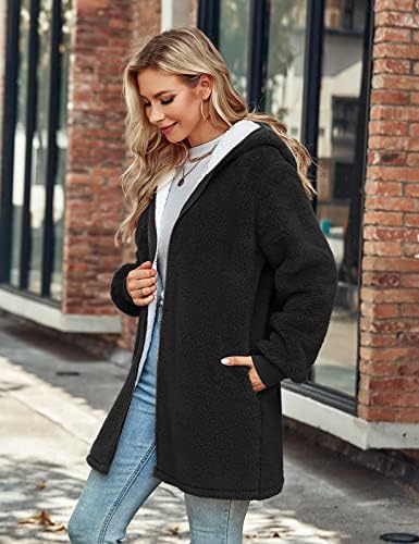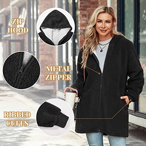 Xnova Oversized dames teddy fleece capuchon vest volledige rits up jas lange mouwen winterjas Sherpa uitloper met zakken dames Fuzzy Solid Tops