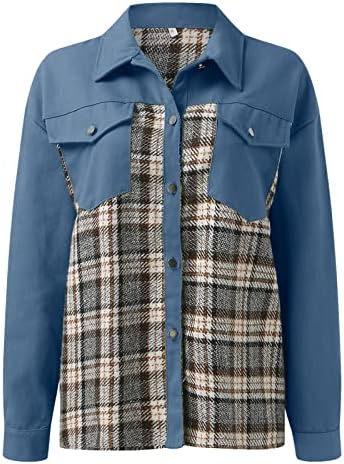 Y2K Jassen voor Vrouwen UK Winterjassen Vrouwen Mode Casual Plaid Jas Herfst En Winter Losse Denim Plaid Mode Lange Mouw Jas Jas Shear Jas Vrouwen